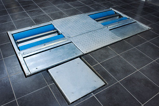 Banc de liaisons au sol trois fonctions (freinage à rouleaux, suspension et plaque de ripage) pour véhicules légers.